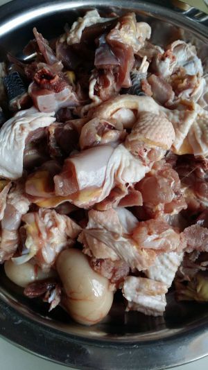 鸡肉洗净,切丁,放老抽姜丝盐味精少许糖,料酒掩至30分钟