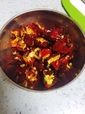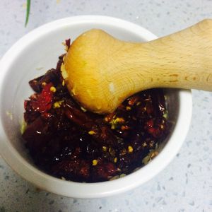 把之前碾碎的辣椒放上去