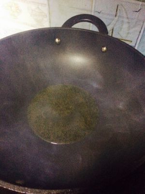 热适量油,油一定要够热,等油冒烟了就可以