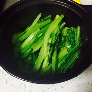 用另一个锅煸炒青菜,不用炒太熟,稍微有点软了就可以,加少量盐有点底味。我比较喜欢把青菜炒一下,觉得比较香,不想炒直接用上一步的红汤烫一下也可以。