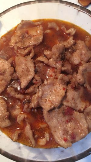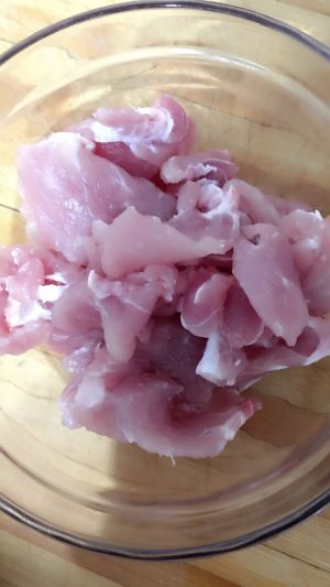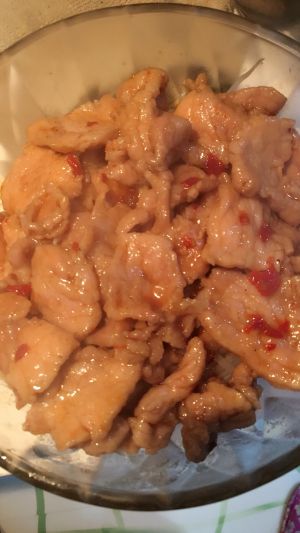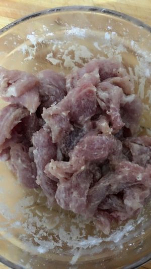 里脊肉切片,放入蛋清,盐,料酒,淀粉,腌一会