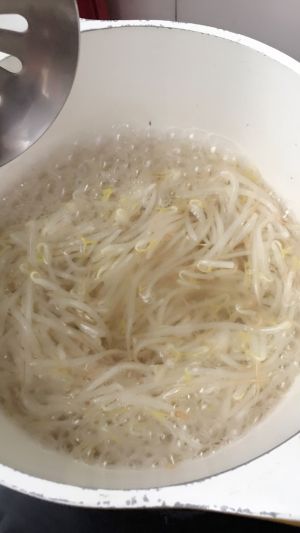 肉变白就捞出放到豆芽上,肉一定不能煮时间长,要嫩嫩的