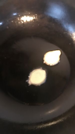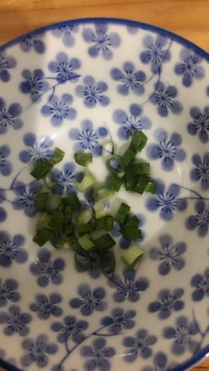 入腌制的肉片(用筷子分片夹入),煮熟后倒入前面大碗撒上葱花。