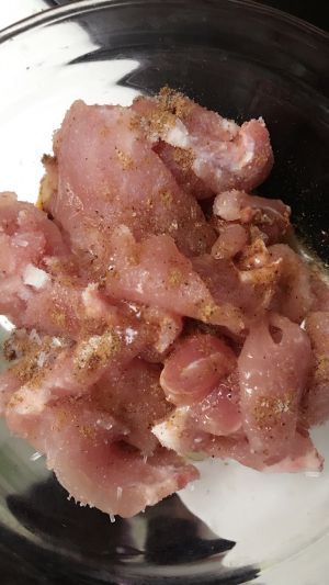 肉片加料酒、鸡蛋、生粉、盐腌制十五分钟