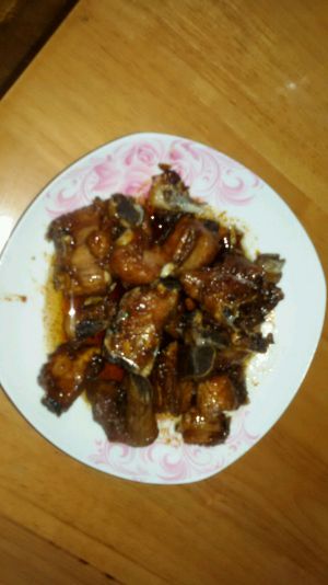 锅里底油'炒姜蒜'排骨'放调好的汁'有淀粉一粘就出锅'