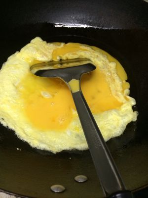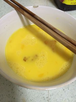 鸡蛋打开备用(加少量凉水,这样炒出来的鸡蛋比较嫩)