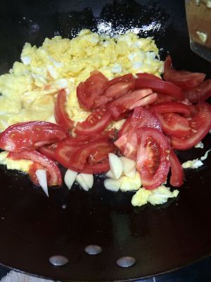 炒鸡蛋,加西红柿,放糖、盐,出锅开吃!