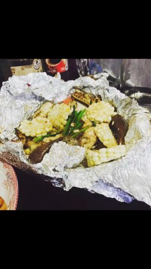 加入蔬菜后,用锡纸包住,蔬菜简单加入作料