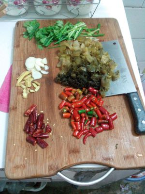所需材料切好备用,图上忘放干花椒了,亲们记得自己加上哦