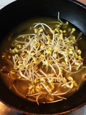待鱼汤变白后将鱼头和鱼骨酸菜等捞出剩汤,加入豆芽将豆芽煮熟!