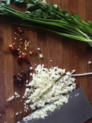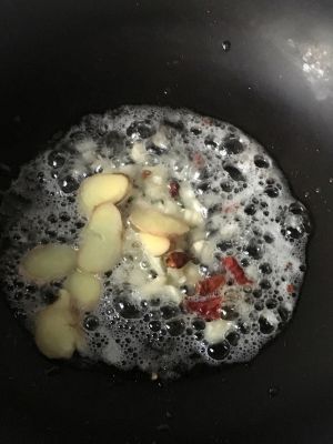 起油锅加生姜大蒜适量干辣椒适量煎炸出香