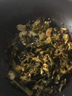锅里点油,放入生姜辣椒蒜瓣,泡菜,反复煸炒