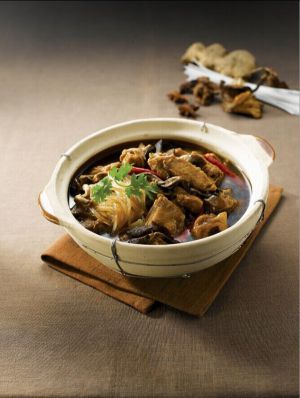 四十分钟后放入粉条和香菇继续煮5分钟.