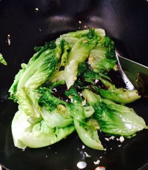 生菜冲洗一下,控水。大蒜切末。起锅烧油,放入蒜末翻炒一下,放入2勺生抽,1勺蚝油,适量盐。