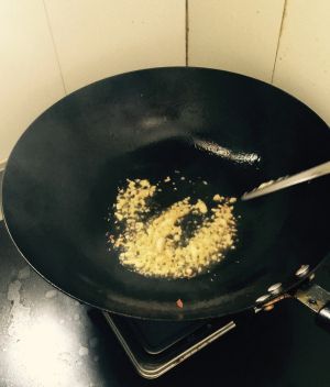 热锅烧油将蒜泥倒入爆香,火候不要太大不然蒜泥容易焦