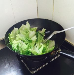 锅内放油,油热放姜爆香后,加入葱,蒜,生菜,大火翻炒均匀!