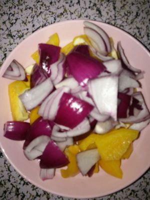 这个都会,我为了不然腰花太老,菜椒和圆葱开水处理过