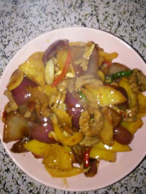 一个人所以炒的过程没拍~(爆炒得有技术含量,大火就拿几下,不然就搞砸了哈)
