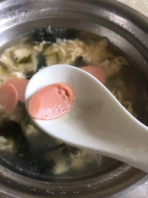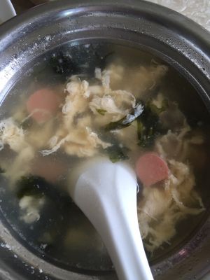 差不多可以起锅的时候再加入紫菜,依个人喜好加多少。还可以再加点虾皮,更美味。大火烧几秒钟就可以出锅了。