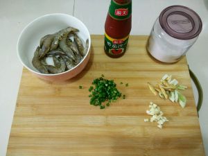 虾洗净后,减去虾须、虾腿、虾线、沙包后备用。