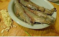 大虾洗净,用料酒,盐,葱,姜,淹半小时。