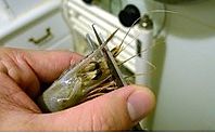 新鲜对虾,剪去须、爪、嘴,以整齐美观,入口方便