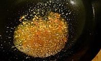 锅中留少许油,下姜蒜炒香,中火,下番茄酱(约3小匙),或去皮切碎的西红柿(只要约3小匙的量),炒出红油