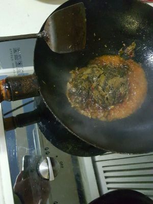 接着下葱姜蒜豆瓣酱翻炒下酸菜翻炒