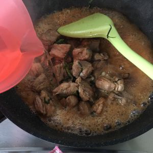 在放入糖、盐、鸡精、料酒、上色。