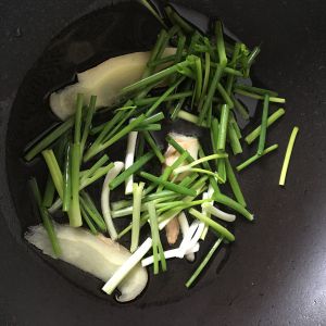 热锅放油,油热后放入葱和姜片