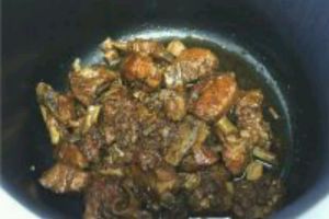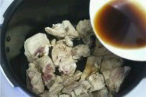 料汁搅拌均匀倒入内胆中,浇在排骨上。