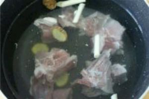 排骨冷水下入锅中,放入葱段,姜片,大料。