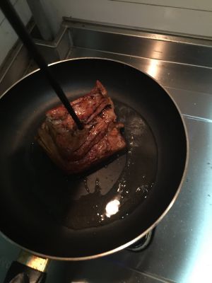 我喜欢给肉全身上色,热油煎猪皮