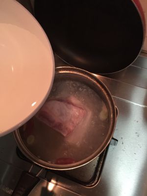放入五花肉,再加凉水大火煮