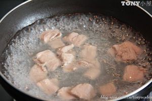 将肉和土豆块分别放入油锅中炸熟(一定要等油锅热了再放下去炸)