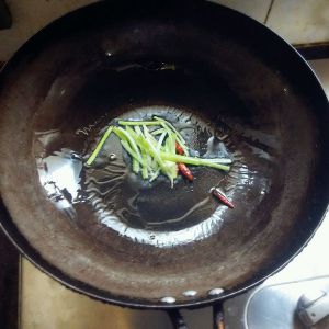 ~锅内放入少量底油~中小火煸葱丝&辣椒段~直至出味~