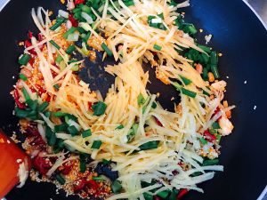 土豆切丝,因为本人刀功甚是不堪入目,所以我用了叉子。