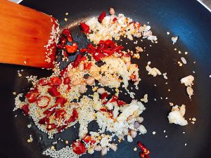 锅里放辣椒 大蒜 芝麻 花生暴香