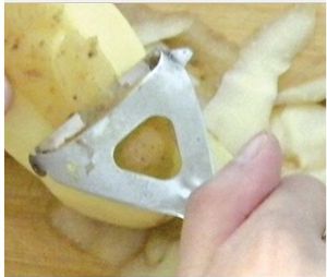 焯水:开锅下土豆,大火10个数差不多,用勺子头压一下看看,有种软中带脆的感觉就行了,出锅,沥水。注意不过凉
