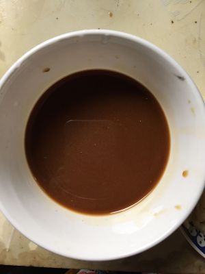 调个酱汁:少量白砂糖、生抽、酱油、蚝油、芝麻油、一小碗温水搅匀