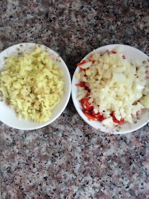 生姜蒜小红辣椒,切末备用,生姜蒜可以多些