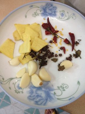 锅热放油,油热放入八角,花椒,香叶,葱,姜,蒜炒出香味