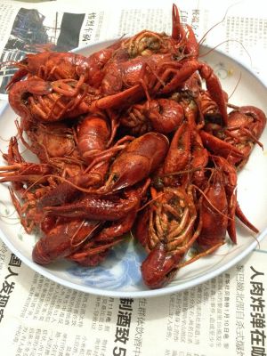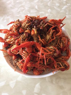 锅内热油把姜蒜花椒爆香,倒入小龙虾翻炒,加热水,加酱油和五香粉焖二十分钟,加盐调味,装盘,口水直流,开动吧