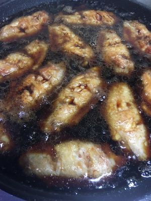 基本上就没什么事儿了,大火开了一会转中火慢慢入味,因鸡翅内有血清不干净略有沫,在意的可清掉~
