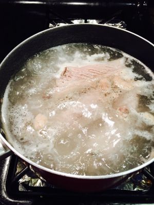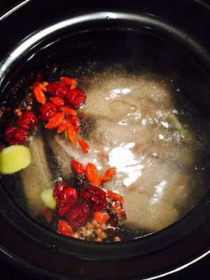 另起一锅清水,依次放入排骨,八角,花椒,姜~然后倒一点料酒,放入红枣和枸杞~排骨再冷水下锅,肉会更嫩~然后大火煮开~