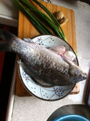 去菜场买鲫鱼一条,一斤左右,杀掉洗干净,嫩豆腐一块