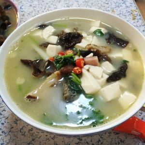 加入豆腐,再煮5分钟左右,加盐和胡椒、鸡精调味即可。