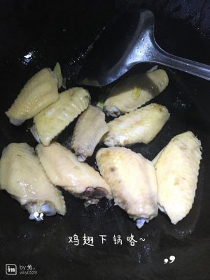 水倒掉,热油,加入一半的姜,炸出姜味,下鸡翅煎至金黄