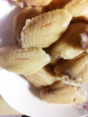 烧热水,水开后放入姜片和鸡翅,水微开后撇去浮沫,鸡翅盛出备用
