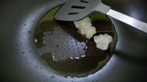 中小火开始炒糖色。我这次用的是白砂糖,用锅铲滑炒白糖,白糖开始成小颗粒状这时糖开始化了,如图。 接着滑炒,这个时候,糖开始呈现一种化了呈焦糖色液体状沉在油底。这个时候糖已经快要炒好了。 继续翻炒,糖开始冒起棕黄色的油花,这个时候糖色就炒好了。